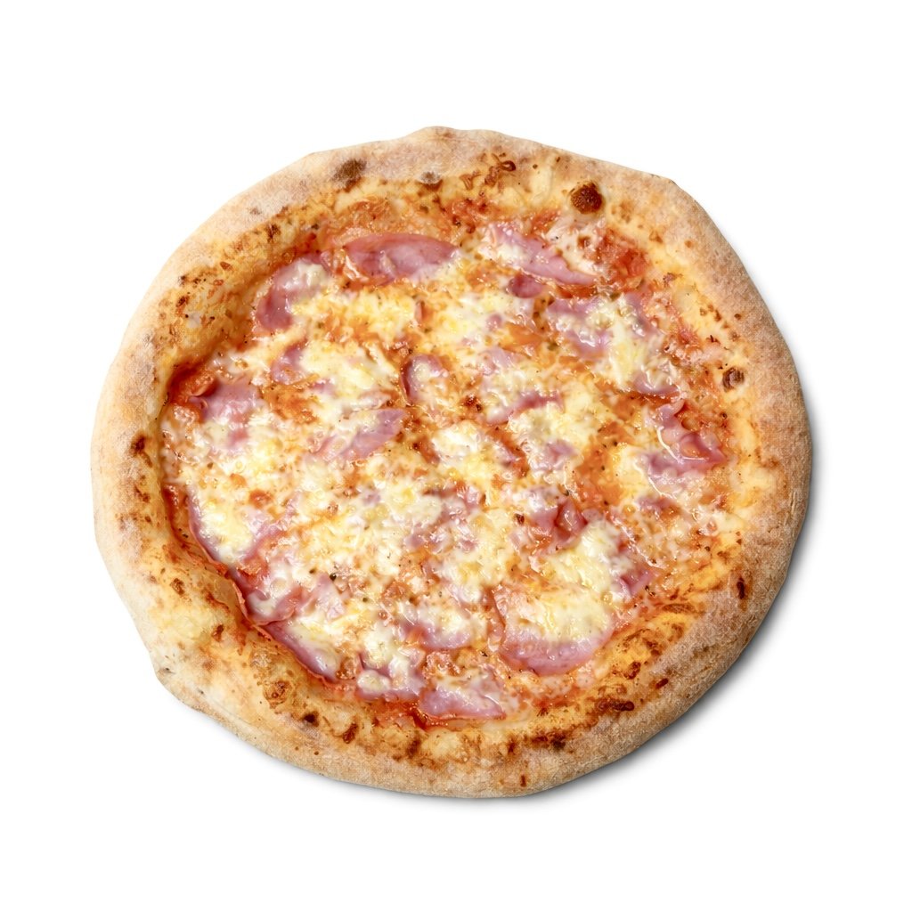 rajčatový základ San Marzano DOP, mozzarella, šunka nejvyšší jakosti, gouda
